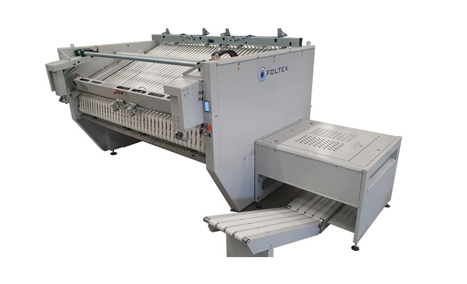 Eingabe und Faltung in einer Maschine vereint. Diese anspruchsvolle Deckenfaltanlage kann von einer oder zwei Personen bedient werden. Schnell und präzise dank servogesteuerte Technik.